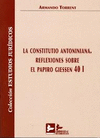La Constitutio Antoniniana, transmitida mediante el papiro Giessen 40 l, providencia del 212 d. C. con la que el emperador Antonino Caracalla concedió universalmente la ciudadanía romana a todos los habitantes del Imperio, desde su editio princeps por Meyer en 1910 se ha convertido en uno de los documentos más discutidos en la ciencia romanística. Este año se cumple el XVIII Centenario de su promulgación, que a juicio del profesor T orrent tuvo un evidente carácter fiscal: aumentar considerablemente el número de sujetos a los impuestos ro· manos cuyo tipo fue redoblado por Caracalla, especialmente los que podían aportar mayores ingresos a las arcas públicas, como la vicesima manumissionum y la vicesima hereditatum. El autor, que ha sido catedrático de derecho romano en las Universidades de Oviedo, Valladolid, Complutense, y en los últimos doce años en la Rey Juan Carlos (Madrid), tiene una competencia indudable para afrontar este tema y un reconocimiento internacional indiscutido. Su entusiasmo por la docencia y la investigación se ve continuada por sus numerosos discípulos que ejercen un magisterio prestigioso en diversas Universidades españolas y latinoamericanas. Esta investigación la ha realizado fundamentalmente en la Universidad de Munich, que cuenta con una riquísima colección de fuentes papirológicas y exhaustiva información bibliográfica, manejando unos materiales que no se encuentran en España, que le ha permitido confrontar las diferentes integraciones propuestas por los estudiosos y ofrecer una nueva explicación de la tormentosa cláusula, la más polémica desde hace un siglo.